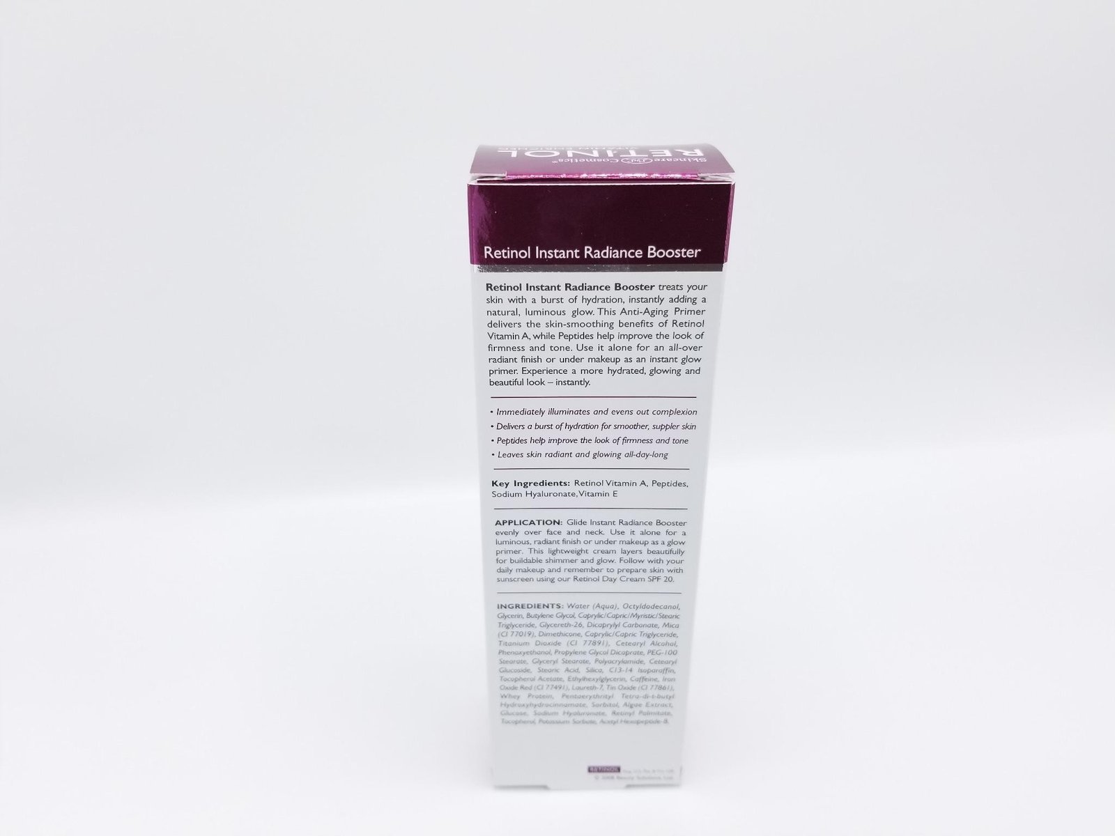 This Instant Radiance Booster is an anti-aging primer designed to treat your skin with a burst of hydration, instantly adding a natural, luminous glow. This primer delivers the skin-smoothing benefits of Retinol (Vitamin A) while Peptides help improve firmness and tone. It can be used alone for an all-over radiant finish or under makeup as an instant glow primer. Experience more hydrated, glowing, and beautiful skin—instantly.